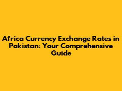 Africa Currency Exchange Rates In Pakistan: A Detailed Guide