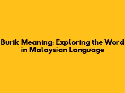 Have you ever stumbled upon the word "burik" and wondered what it means? Well, you're not alone! This article dives deep into the meaning of "burik" in the Malaysian language, exploring its various nuances and how it's used in everyday conversations. So, let's get started and unravel the mystery behind this intriguing word, guys!