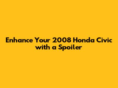 Adding a spoiler to your 2008 Honda Civic is a fantastic way to enhance its appearance and potentially improve its performance. Whether you opt for a subtle lip spoiler or a more aggressive wing spoiler, the right choice can transform your ride. Remember to consider the different types of spoilers, follow proper installation techniques, and maintain your spoiler to keep it looking its best. With a little bit of effort, you can give your Civic a fresh, sporty look that turns heads wherever you go. Happy modding!