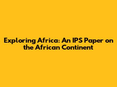 Exploring Africa: An IPS Paper On The African Continent