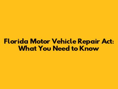 Hey guys! Ever wondered about your rights when getting your car fixed in Florida? Well, buckle up because we're diving deep into the Florida Motor Vehicle Repair Act. This nifty piece of legislation is designed to protect you, the consumer, from shady repair practices and ensure you get fair treatment. Whether you're dealing with a simple oil change or a major engine overhaul, understanding this act can save you a lot of headaches and money. So, let’s break it down in a way that’s easy to understand and even a little fun!