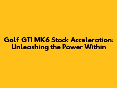 So, there you have it, guys! Everything you need to know about the Golf GTI MK6's stock acceleration. Now go out there and enjoy the ride!