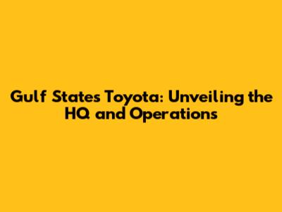 Gulf States Toyota: Unveiling The HQ And Operations