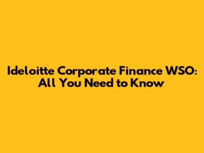 Ideloitte Corporate Finance WSO: All You Need To Know