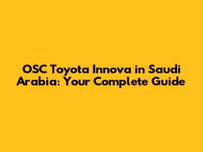 OSC Toyota Innova In Saudi Arabia: Your Complete Guide